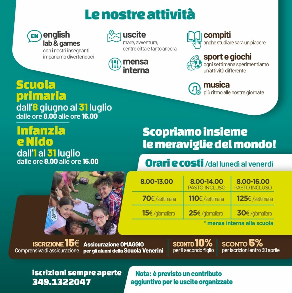 Proponiamo percorsi alla scoperta della bellezza che ci circonda, con attività di sport, giochi, musica, cucina e avventura in loco e fuori porta. E con un particolare focus sull’apprendimento della lingua inglese, favorito nel modo più divertente e naturale.